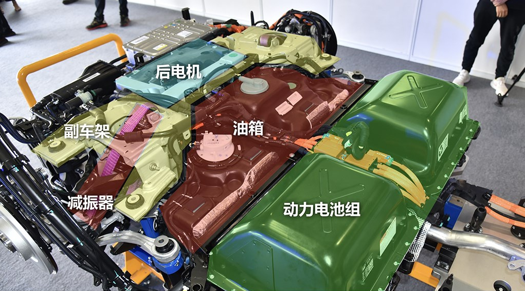 而后置驱动电机采用的则是P4架构,能单独驱动车辆,可以实现纯电四驱和混动四驱,同时兼顾制动能量回收功能。