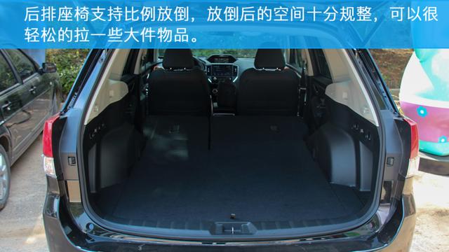 斯巴鲁森林人采用了五座的座椅布局,所以后备箱的空间也可以得到很好的保障。空间十分的规整,并且后排座椅支持比例放倒,放倒后的空间为全平,拉一些大件物品没有任何的压力。
