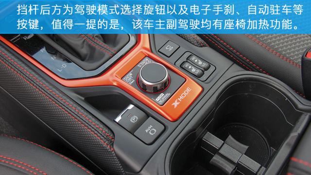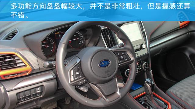 内饰设计部分,斯巴鲁森林人以黑色作为主色调,并且加入了许多橙色元素进行点缀,整体看起来一点也不老气,在功能布局上一切以实用为主,空调以及多媒体系统全部为实体按键,操作起来十分的方便。