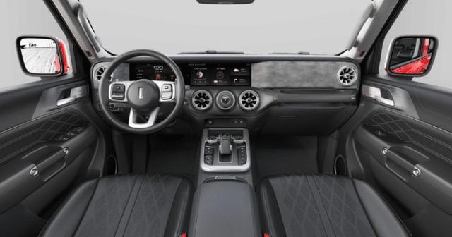 新车内饰延续了外观刚柔并济的设计风格,体现了时尚与豪华。 中控台采用12.3英寸双联屏设计,屏幕内可显示海拔、气压、天气等越野信息。此外,新车配备了双区自动空调,可以满足不同乘客的要求。