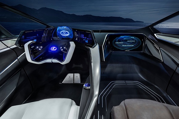 内饰是LF-30非常有意思的部分,首先窗户由于注入了图层,能够支持无极亮度调节,也能根据室外亮度实施调整图层颜色。内饰采用最新的“Tazuna”设计理念,将屏幕功能与HUD抬头显示完美地结合在一起,尽可能减少由于操控功能而导致的视线脱离路面的情况。