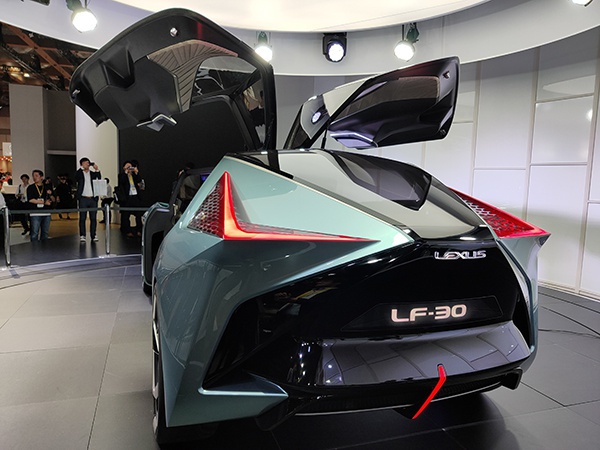 车尾部分也采用了非常具有科幻感的纺锥形设计,LEXUS及LF-30标致都使用了灯光标识,进一步提升车尾的科技感。尾灯部分与前大灯相呼应,在取消灯罩的前提下在灯腔内采用点阵式设计,点亮时效果非常出色。