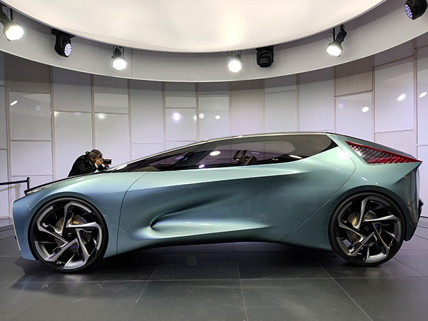 来到车身侧面,通过极短的前后悬设计让LF-30造型更加敦实,定位于城市通勤车型,这种设计也能够大大提升新车在城市间穿行的简易度。观察门板线条能够发现,LF-30运用了非常简单但工艺极高的u型线条,通过曲面及上下直线凹出了动感且有科技感的车身外形。