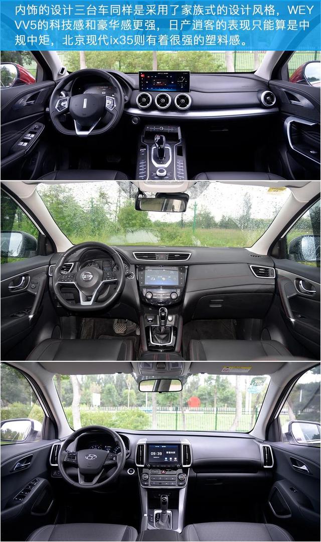 外观内饰:WEY VV5精致、日产奇骏 (配置|询价)时尚、现代ix35中庸
