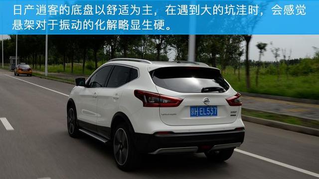日产逍客的底盘以舒适为主,在道路状况良好的铺装路面上,能提供不错的舒适性,但是经过全新标定的悬挂系统还是要比VV5更硬一些,在遇到大的坑洼时,会感觉悬架对于振动的化解略显生硬。