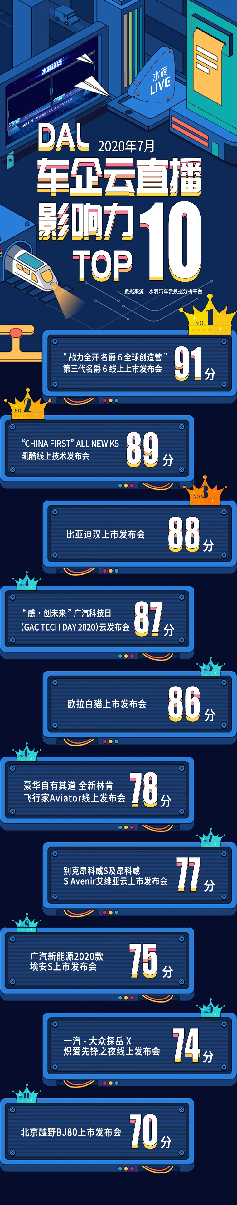 以下是7月份DAL车企云直播影响力Top榜单排行。