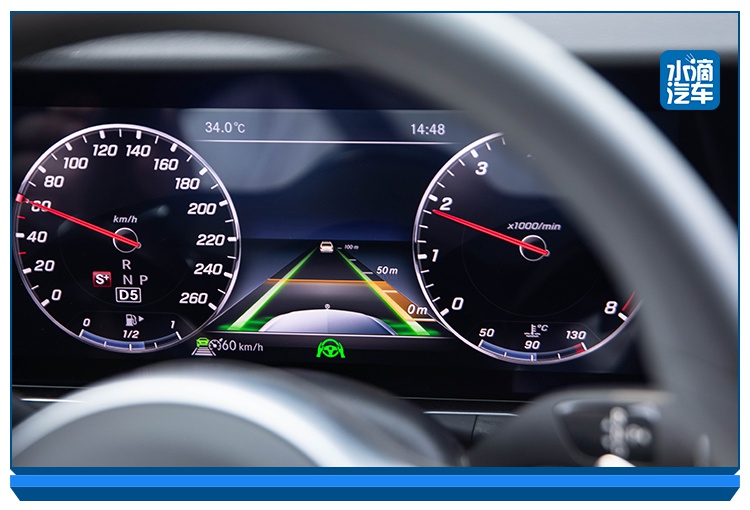 开启辅助驾驶之后,12.3英寸的液晶显示屏上会出现绿色的双手扶方向盘的图标,在笔者试驾过程中,不论是高速状态还是城市道路,这套系统非常好用,前方无车,会按照既定时速行驶,前方车速低于设定速度,车辆自动降速,你也可以通过方向盘调节和前车的跟车距离。
