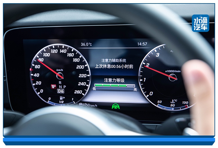 车辆同时能够监测你的注意力程度,给予及时提醒,比如服务区位置。如果开启辅助驾驶之后一段时间没扶方向盘,也会做出提醒,让你不要过度依赖辅助驾驶。偏离道路时液晶屏会有提示,方向盘会有震感;后车靠近,倒车镜也会出现红色三角形的盲点提示。这些小细节都能在很大程度提升驾驶的安全性。
