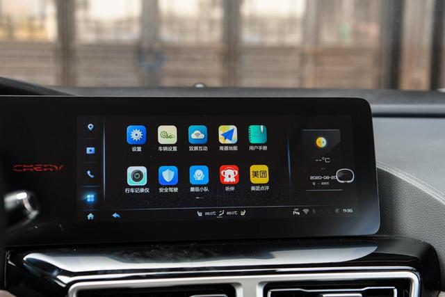 在车内科技氛围上体现在使用了一块12.3英寸全液晶仪表和12中控大屏,并且采用了联屏设计,也是目前比较流行的设计风格。中控大屏搭载车载智能网联系统,功能性也比较完善,比如:高德地图、酷我音乐、美团等等APP都能使用。还配备了科大讯飞AI语音智能助手,实现对常用功能的快捷控制。
