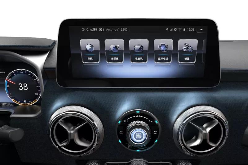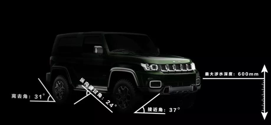 作为一辆硬派越野车型,新车采用了非承载式的车身设计,越野数据上可以达到最大600mm的涉水深度和220mm最小离地间隙、接近角为37度,离去角为31度,纵向通过角为24度。