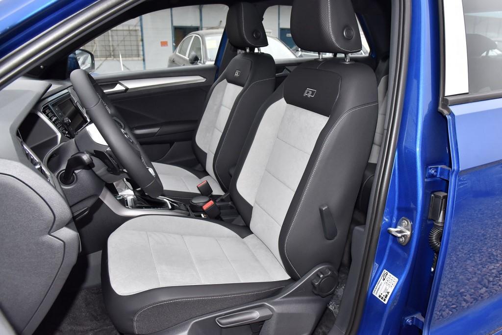 座椅部分R-Line版车型采用了这种典型的带有"R标"的黑灰配色座椅,包裹性一般但是支撑性做的不错。只是可惜即使顶配版车型也没有配备电动调节。