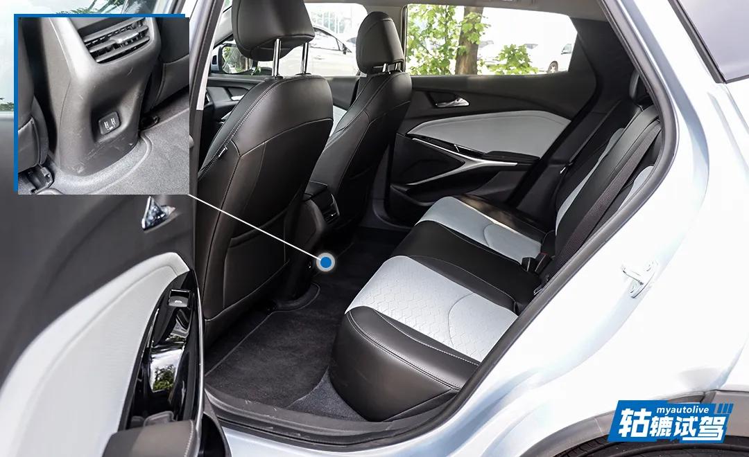 来到后排,带有一定倾斜角度的座椅可以让腿部得到更好的承托,提升乘坐的舒适性。另外,后排地板也没有凸起,并且有两个USB充电口可供使用,这些设计值得点赞。至于腿部空间,虽然2660mm的轴距不能让你随意跷二郎腿,但也不会带来压抑感,整体表现属于同级正常水平。