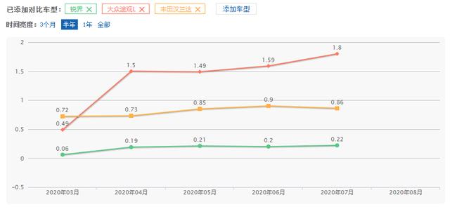文章最后给大家奉上这三款车型的销量做个参考。毫无疑问,终端价格优势更大的途观L拿到了第一名,汉兰达在处于中等水平,这也有点像它在展厅里不温不火又走量的情况,而福特锐界明显受到了品牌弱势劲头的拖累,曾经也做到过1.3万台的月销量,但今年却难以突破3000台的单月销量。总之,如果没有过多的越野需求的话,这三款车型,在25万的价格都可以入手一台性价比不错的配置。另外三款车都就很好的兼顾了品牌、动力、质感甚至空间,关键就在于你喜欢哪一款。