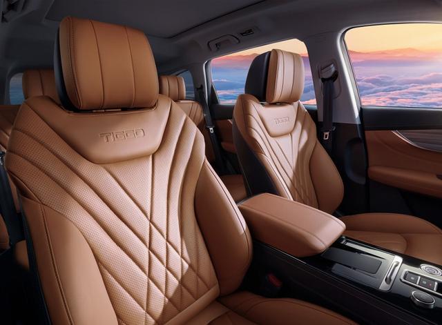 瑞虎8 PLUS内饰采用了黑/棕双拼色调组合而成,使其看上具有不错的奢华感。此外,新车在多个细节部分加入了银色镀铬饰条作为装饰,在提升精致度的同时档次感也随之得到了提升。值得一提的是,新车号称“豪装陆地飞行舱”在座椅方面,运用了环抱式设计,并采用了大量的NAPPA皮革作为包裹,在乘坐舒适性上大有提升。此外,为凸出“头等舱”的乘坐体验,新车还配备了特有的多段可调节头枕,可谓是细节满满啊。