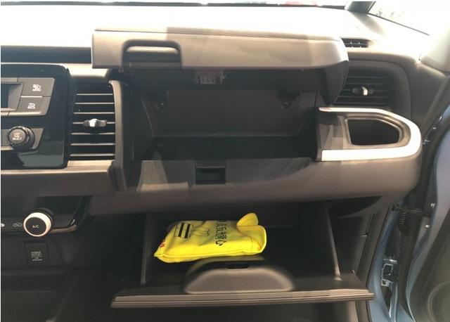 另外飞度内部储物格也很多,前排门板上、中控杯架以及手套箱等,中控台两侧还增加了两个储物格,可以放一些小物件。