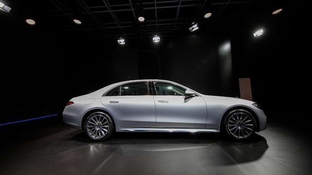全新一代S级的侧面也有了不小的变动,首先是车身腰线由三道精简为了两道,因此有很多人认为新一代S级没有了从前的线条美感,但实际上这并不是美感消失,而是全新S级变得更“大”了,而且整整比上一代车型大了“一圈”,官方数据显示,全新S级轿车的轴距较前代车型增加了51mm,带来了3216mm的同级最长轴距。不仅如此,全新S级轿车的车身尺寸也得到全面升级,车身长度为5289mm(较上一代车型+34mm);宽度为1921mm(+22mm);高度为1503mm(+12mm)。
