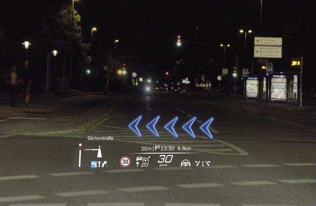 全新一代奔驰S级搭载了全球首创的AR HUD技术,其显示面积相当于77英寸的显示器,并突破性地采用了源自顶尖高清院线放映所使用的数字微镜器件的成像单元,它由130万个微镜片和一个高效光源的高分辨率成像矩阵构成,清晰的画质与直观的设置令信息显示一目了然,在减少注意力分散的同时令驾驶更加轻松便捷。在驾驶时,动画箭头以虚拟形式投射于驾驶者前风挡10米处的实际环境中。