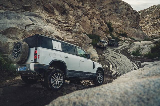 在苍茫的戈壁,泥泞道等复杂路面情况随时会碰到,这时候,能不能继续前行就只能仰仗车辆四驱系统。而路虎卫士之所以深受喜爱,正是因为它的全时四驱系统还配备了被越野迷奉为“神器”的中央电控差速锁+后桥差速锁,拥有出色的电子限滑能力,而配备的双速分动箱可将则低扭放大2.93倍,进一步加强了整车的越野能力。