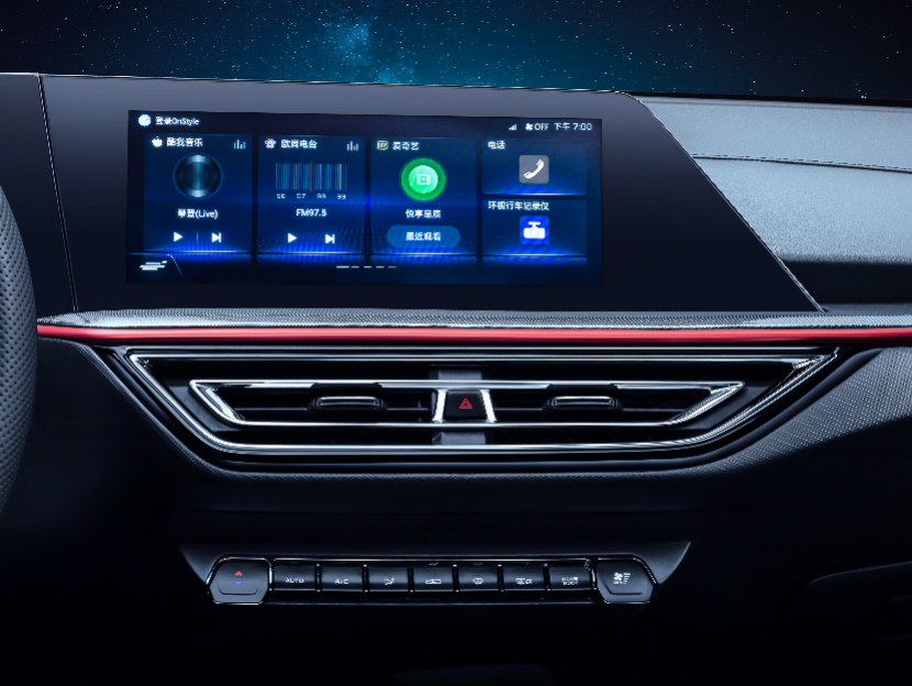 通过官图我们发现,整台车的内饰基本上延续了目前业界非常流行的风格:有大屏,有线条,注重在一些细节,比如空调出风口、排挡区等位置通过不同材料选搭呈现质感。