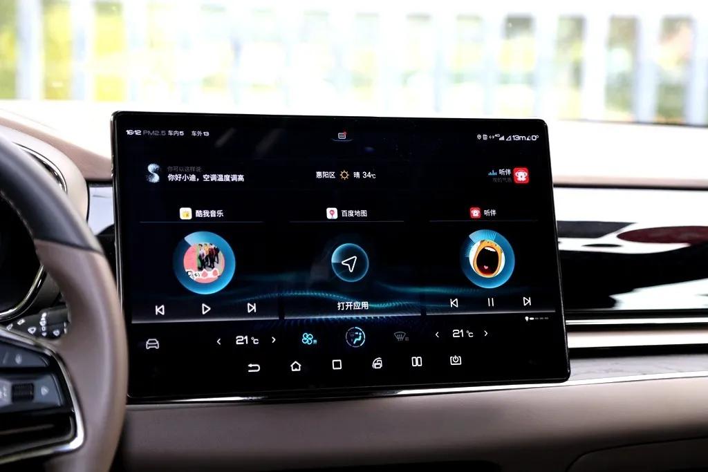 用料上乘之外,配置也要打动人心。可横竖旋转的15.6英寸液晶触摸屏中搭载DiLink3.0智能网联系统,在实际操作时很易上手,从使用逻辑和页面分布来看,经常在家用iPad看剧的朋友使用汉DM的屏幕时毫无压力。