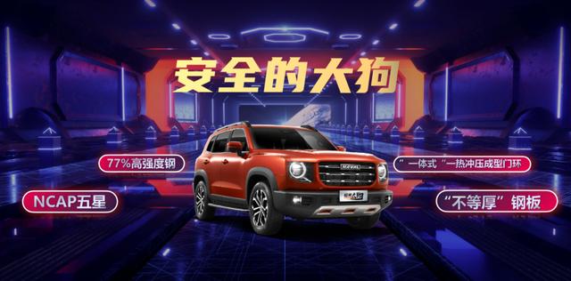 例如在大家尤为关心的安全性方面,柠檬平台的轻量化和"全面安全"理念的实施,让哈弗大狗应用了77%高强度钢、"不等厚"钢板,"一体式"热冲压成型门环,车身满足C-NCAP五星最高安全等级,同步考虑了全球法规的拓延性。