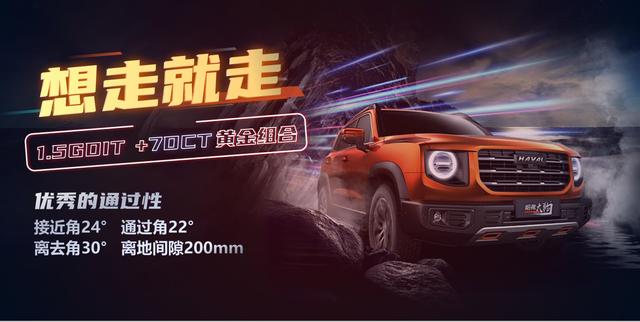 柠檬平台带来更加高效的燃油动力,低排放、轻量化、高性能的1.5GDIT+7DCT黄金组合的澎湃输出,动力可以说随叫随到。优秀的通过性更是他的强项,接近角24°、通过角22° 、离去角30°,离地间隙200mm,无论都市疾驰,还是跋山涉水,大狗都能轻松应对,