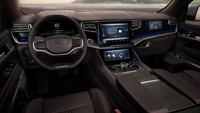 来到车身侧面,新车腰线设计顺滑,而在车门下方位置加入了“ GRAND WAGONEER”标识,这也证明了它的全新身份。此外,新车还配有大尺寸多辐式轮圈,进一步增强了它的运动气息。