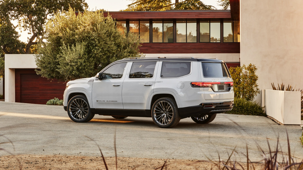 大瓦格尼的侧面线条神似国内的大指挥官,平直的车顶以及矩形的轮拱都是Jeep品牌标志性的设计语言。此外,B/C/D柱全部采用了与车身同色的设计,也显得十分个性。作为Jeep品牌的旗舰SUV,官方虽然并未公布该车的具体尺寸参数,但是考虑到它的竞争对手主要是林肯领航员这类美系大型SUV,所以我们推测该车的车长将会超过5.2米,轴距超过3.1米。
