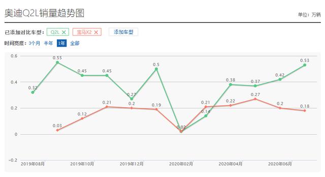最后我们再来聚焦一下两款车型的销量,近一年来奥迪Q2L其实是一直领先于宝马X2的。不过参考两车的指导价格,奥迪Q2L有着明显的优势,而对比下来宝马X2的优势主要在于动力部分。而至于终端优惠方面,这次宝马终于赶超了奥迪。其实两款车作为都市白领女性座驾,都很不错,有品牌、有质感、有设计,那么最终就看你更侧重动力还是价格了。