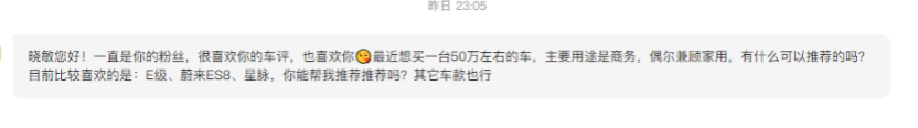 50万预算看了奔驰E级 (配置|询价),蔚来ES8 (配置|询价)和路虎星脉 (配置|询价)。