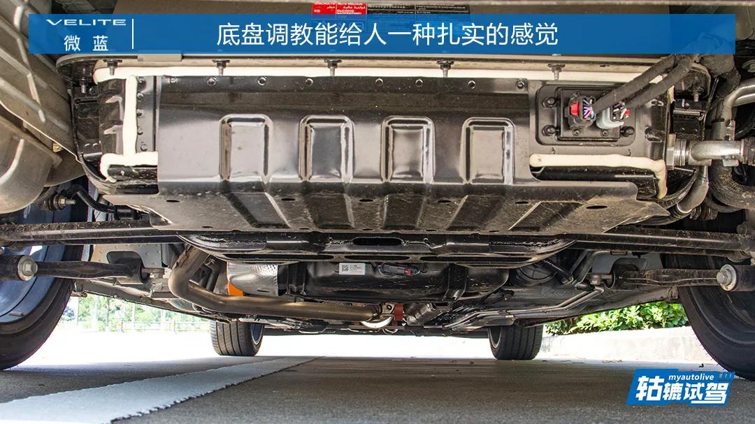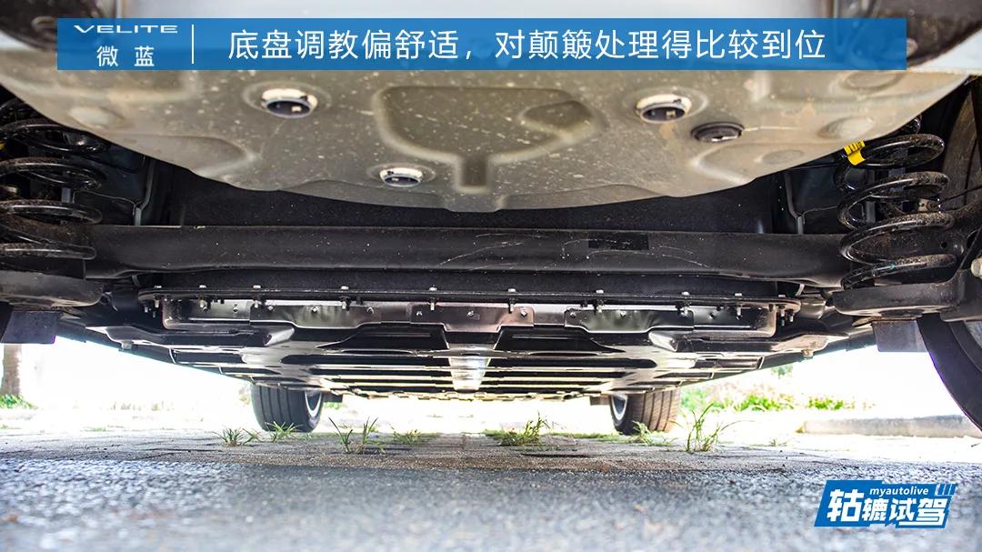 底盘方面,微蓝6 PHEV的调教偏硬朗一些,悬挂具备一定的韧性,这种感觉在高速经过坑洼路段时比较明显,车身不会有明显的弹跳现象,同时车内的颠簸感也不明显,试驾车基本都是“bobobo”几声就过去了,给人一种沉稳、扎实的感觉。不过在低速行驶时,车内的震动较多。