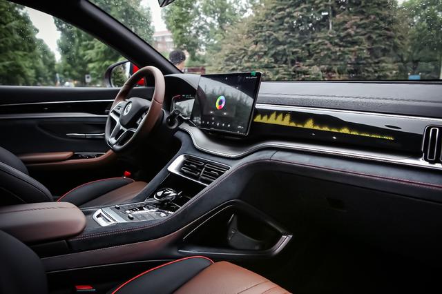 首先是"铠甲点阵"的进气格栅和"龙游四方"的腰线。第一个设计灵感来自兵马俑,展现了中华民族的传统文化,业界较为罕见;第二个贯穿整个车身的腰线,同样是业界罕见,因为它对车漆的冲压和钣金工艺有一定要求,这也从侧面证明比亚迪汽车在这块已经合格。
