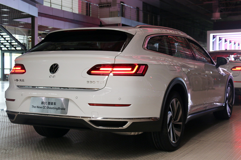 CC猎装车的前脸延续了CC的部分设计元素,而在此基础上加大了镀铬式进气格栅的尺寸,再搭配上贯穿式灯带的布局,让整体视觉效果显得更为运动。侧面部分,从新车B柱车开始车顶线条一直延续到车尾部并与后备厢融合,更好的体现出猎装车风格,并且猎装版将拥有565L的后备厢容积,第二排座椅放倒后扩大为1632L。