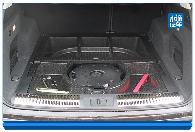 甚至在打开隔板后,还有许多储物槽,深度大概一掌的距离,放一些零碎的东西十分方便,防止物品在行车过程中随意移动。非全尺寸的备胎和BOSE的低音炮也被安置在后备箱盖板下方。