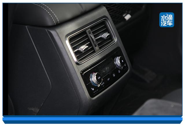 舒适性方面,前排带有电动方向盘调节,同时带有手机无线充电板,在当下十分便捷。后排带有独立空调,可以与前排温度分区控制。并且带有220V电源接口以及一个USB接口,并配备老板键,在后排办公完全不在话下。