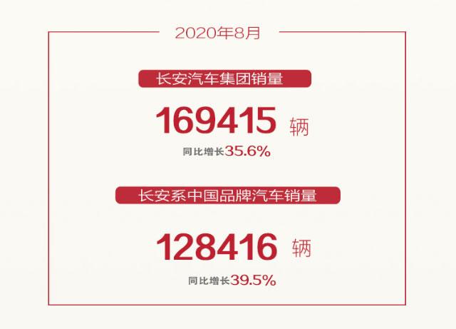 2020年9月8日,长安汽车正式公布了8月销量数据,从数据来看,长安汽车集团8月销量169415辆,同比增长35.6%;长安系中国品牌汽车8月销量128416辆,同比增长39.5%。