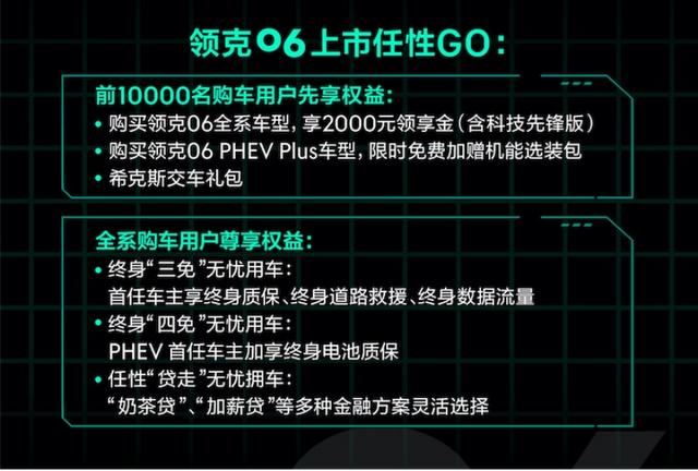 上市的同时,领克还为06推出一系列购车政策。都在图里,我们放张清楚的,感兴趣的小伙伴可以看看。