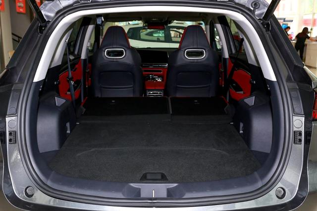 行李厢容积为620L,底部也比较平整,方便放置大件行李箱等物品。后排座椅支持比例放倒,可将内部空间进一步延展至1450L。
