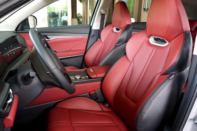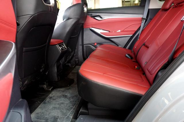 前排采用人体工程学的运动一体式座椅,实拍车型采用了红黑双色的搭配,运动感十足,座椅在包裹性及支撑性方面也做得比较到位,并且中高配车型支持6向电动调节、座椅加热及3组座椅记忆功能,舒适配置较高。