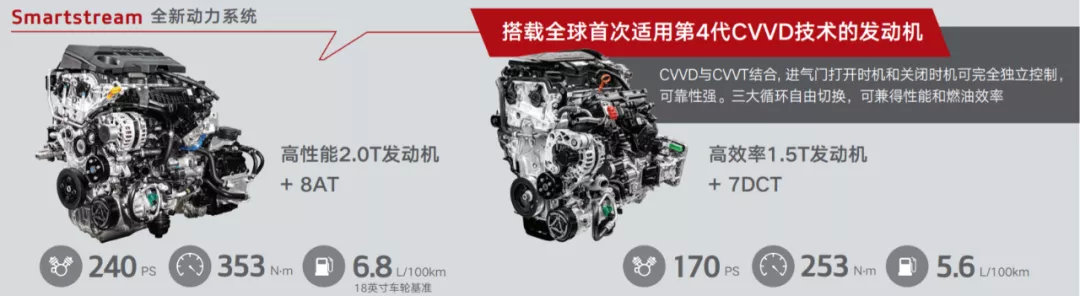 动力方面,全新K5提供了1.5T+7DCT和2.0T+8AT两套动力组合,最大功率分别为170/240马力,峰值扭矩分别为253/353N·m。其中。1.5T发动机还搭载了起亚最新的CVVD连续可变气门持续开启时长技术,能够灵活独立控制进气门的开闭,提升性能和燃烧效率。
