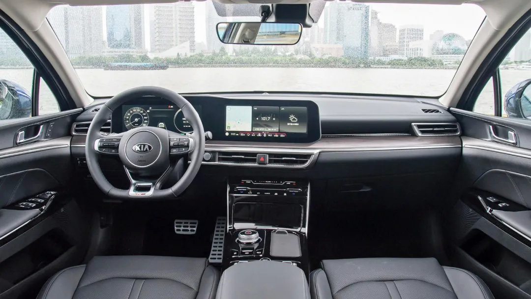 K5的内饰设计相对比较常规一些,两块大屏是目前常见的设计语言,中控台的线条以平直的风格为主,相比运动激进的外形,内饰反而收敛了很多。