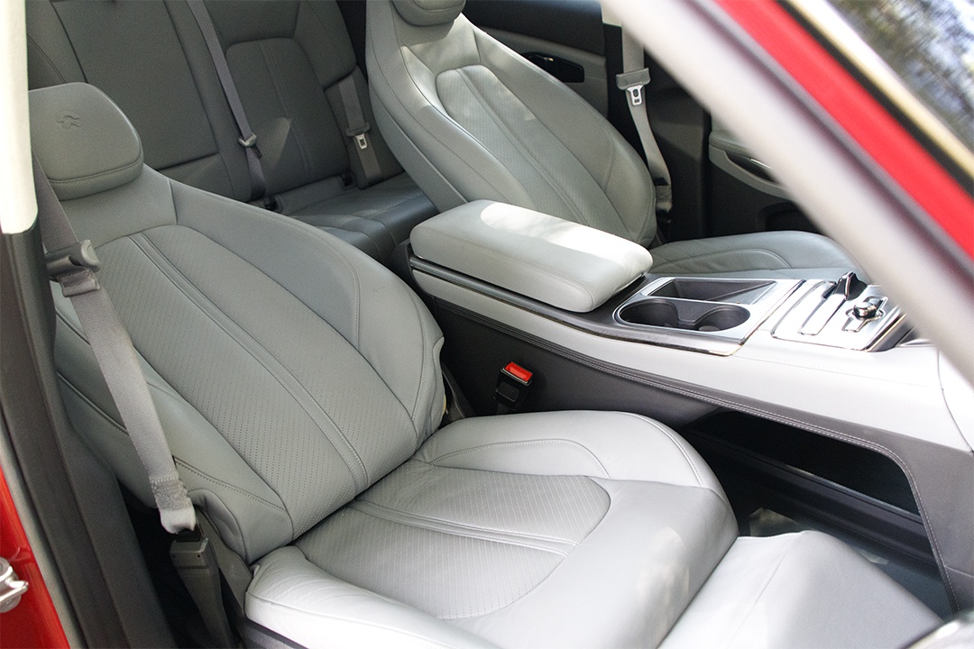 这辆首发纪念版车型还搭载有空气悬架,除了升高和降低车身以外,它还可以设定舒适进入模式。空气悬架对于舒适性的提升作用还是挺大的,路面常见的细碎颠簸或者起伏,基本不会影响到车内的乘客。
