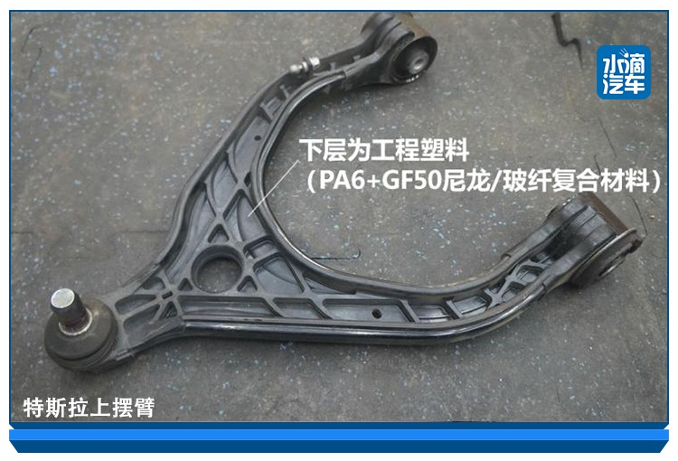 关于其强度,官方曾声称其经过16.5万公里的底盘强化试验和4.4万公里的综合耐久性测试,同样也进行了撞击测试,下摆臂没有出现任何问题。官方还给出一组数据,该下摆臂横向可以承受约为10.2吨的冲击力,纵向可承受约6.12吨的冲击力,与铝材质的强度是没有差别的。此外,该材质相比单纯的金属材质拥有更强的耐高温性,还能够帮助降低悬架震动,提升NVH表现。