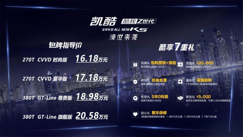 笔者注意到,起亚凯酷上市发布会上公布的官方指导包牌价为16.18万-20.58万元;同时对年轻消费者给与7重好礼,包括“包牌礼、终身礼、置换礼、爱新礼、免息礼、新友礼和贴心礼”;
