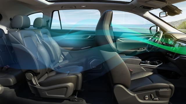 理想ONE的豪横地方在于三区自动空调。这意味整车的主驾、副驾、后排都能获得不同的温度调节,在它这个级别里面算是一项奢侈的配置。理想ONE的另外一大创新点在于“新风系统”。新风系统故名思意就是能够输送外界的新鲜空气,然后再通过排风系统把车内空气排送出去,始终保持车内空气清新。除此之外,理想ONE还配置了AQS空气监测和PM2.5过滤,达到了中级车的应有水平。