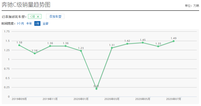 销量层面:北京奔驰C级在2020年7月份的单月销量为14925台,而2020年累计销量为84690台。从趋势上来看,北京奔驰C级自进入3月份以来销量就偏向稳定。就目前情况来看,平均单月销量基本维持在1.4万台以上。