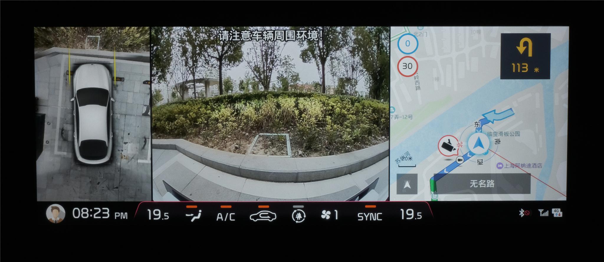 除了以上一些日常实用性的功能以外,这套系统在安全性方面也有很多值得肯定的地方。前面提到的周围状态查看功能,可以看出车辆上使用的是广角摄像头,那么通过后方的这一颗摄像头,能够带来更加多样化的视角,例如车辆的左右侧及正后方。