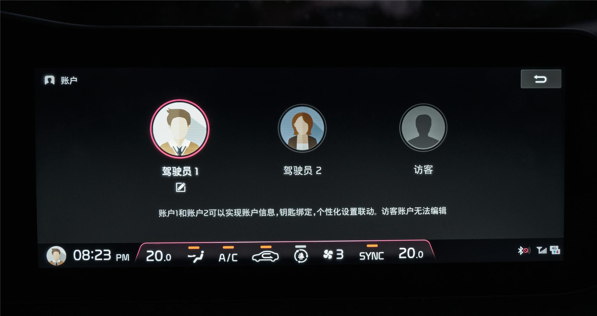 凯酷的中控屏的左下角有一个用户的头像,选择的不同的“用户”,可以与车辆的很多设定进行联动,例如座椅的自动调整、应用程序的账号关联,包括QQ音乐(收藏夹,歌单)听伴、喜马拉雅(收藏夹)、百度地图(最近目的地,POI列表)等等。