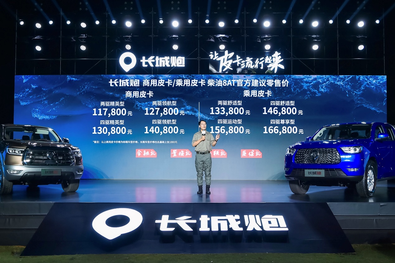 9月12日,长城炮 (配置|询价)乘用皮卡、商用皮卡柴油8AT在海南正式上市。其中,长城炮商用皮卡柴油8AT售价区间为11.78万-14.08万元;乘用皮卡柴油8AT售价区间为13.38万-16.68万元。