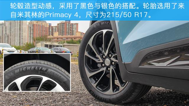 新车定位为一款紧凑型SUV,长宽高分别为4264/1767/1618mm,轴距为2675mm。轮胎采用了来自米其林的Primacy 4,尺寸为 215/50 R17,这款轮胎在湿地以及静音方面都有着不错的表现。